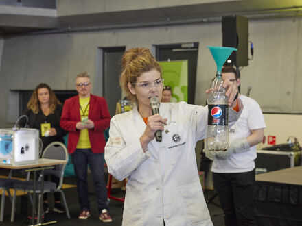 Eftir veitingu viðurkenninga var komið að Sprengju-Kötu sem sprengdi Vísindavöku Rannís í gang eins og henni einni er lagið.